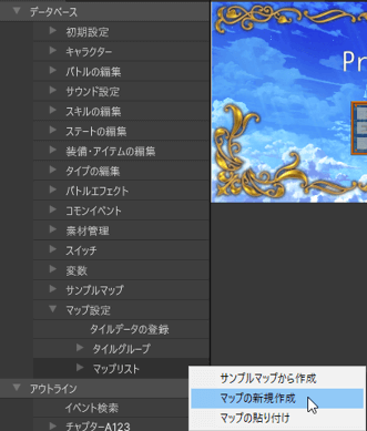 ヒエラルキーのマップの「マップ編集」を右クリックし、「イベントの新規作成」を選択します。
