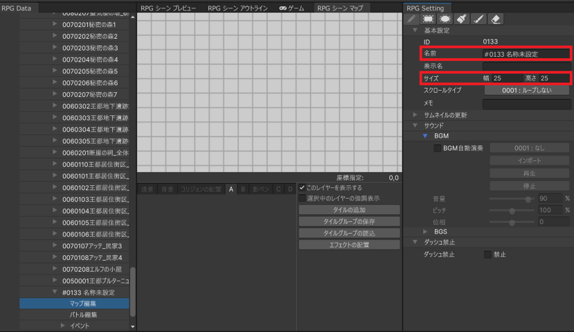 次はゲーム開始時に、どこから始まるのか……つまり、プレイヤーキャラクターがどのマップのどの座標にいるのかを設定する必要があります。