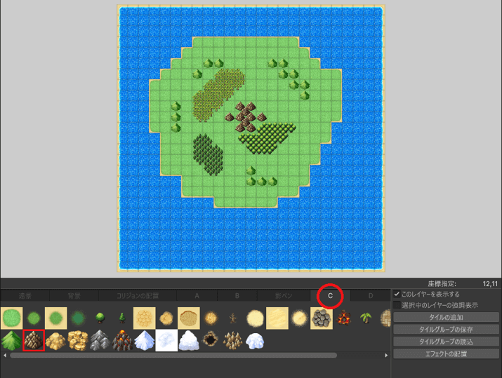 タブCにもタイルグループ「World_A2」を読み込んでください。タブBと一緒ですね。