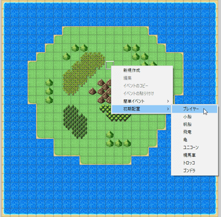 初期位置にする座標を右クリックし、初期位置>プレイヤー の順に設定します。
