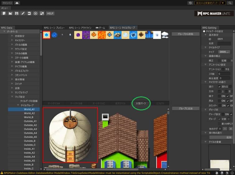 初期状態に登録されているタイルグループでも、大型パーツが登録されている物があります。