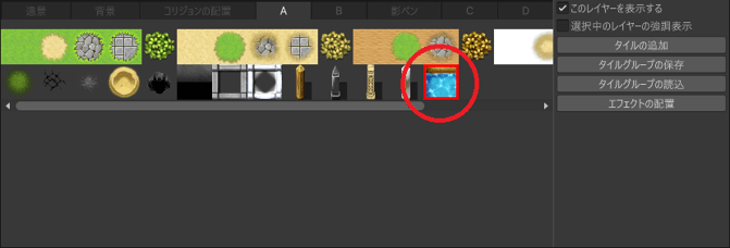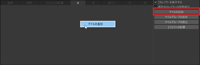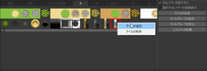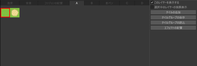 使用するタイルのセットを読み込む時に行ったのは「タイルグループの読込」というボタンを押すことでしたね。