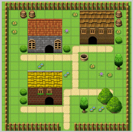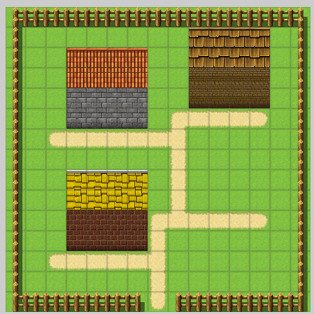 マップに、オートタイルを使った民家をいくつか配置してみましょう。