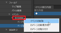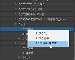 イベント編集モードでマップを右クリックしたとき、新規作成以外にも項目がありました。それらについて説明します。