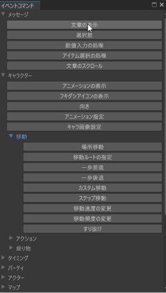 それぞれのイベントコマンドについては、後の実践編にて、主要なものから、説明を行っていきます。