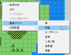 フィールドの町アイコンの上で、右クリックし、簡単イベント>移動 を行ってください。次のような画面になります。