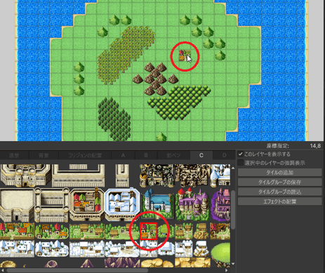 町のタイルがありますので、好きなタイルを好きな位置に配置します。