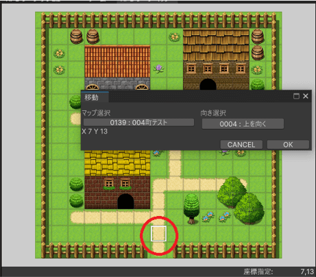 それでは、先に説明した「簡単イベント」の「移動」を利用して、ふたつのマップを繋ぎましょう