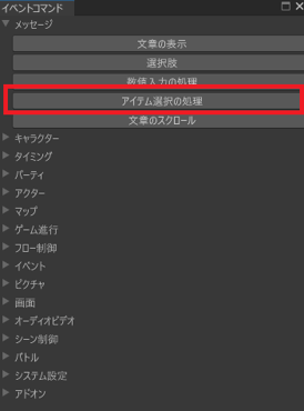 後述するイベントコマンド「アイテム選択の処理」での利用を想定しています。