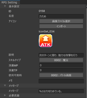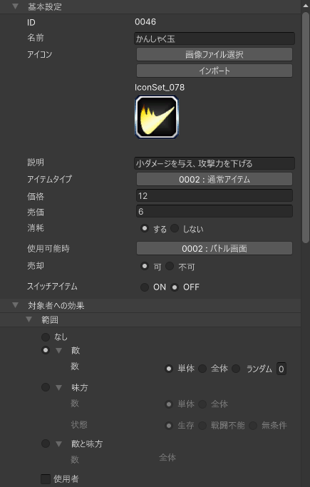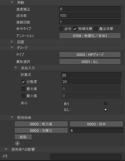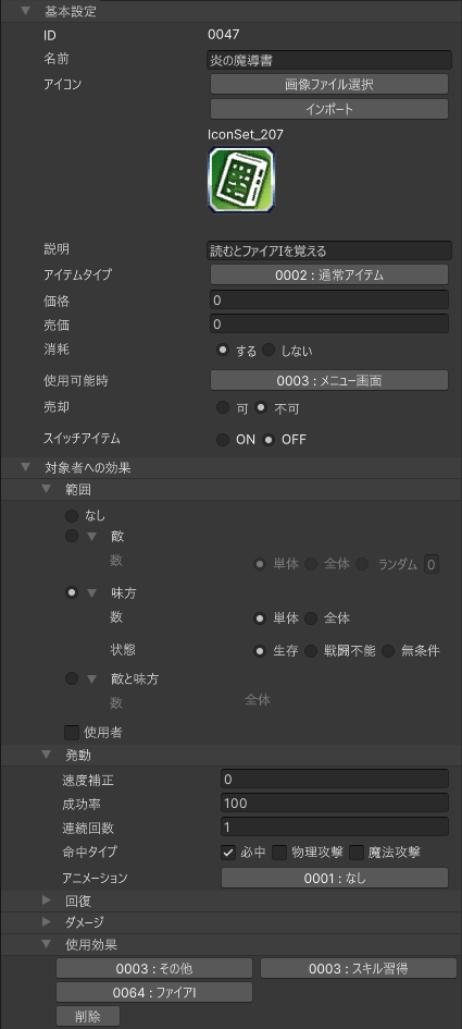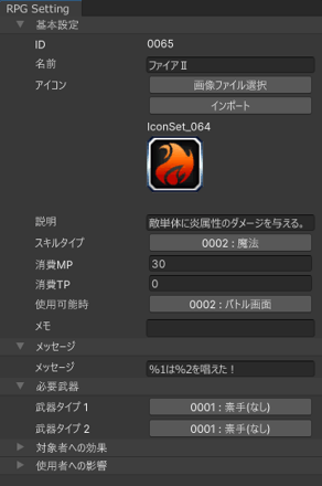 スキルとアイテムの使用効果は、共通のやり方で設定が可能なことを前編で紹介しました。