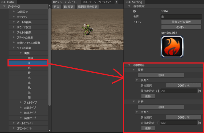 そこで特定の属性に、他の属性への耐性または弱点を設定可能です。