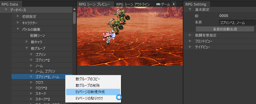 「EVページの新規作成」「EVページの貼り付け」が表示されます。これが「バトルイベント」と呼ばれるものです。