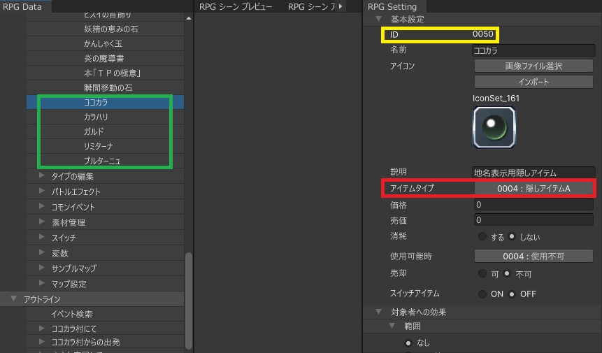 ここでは実際に、使用することでコモンイベントを起動するアイテムを作成しましょう。