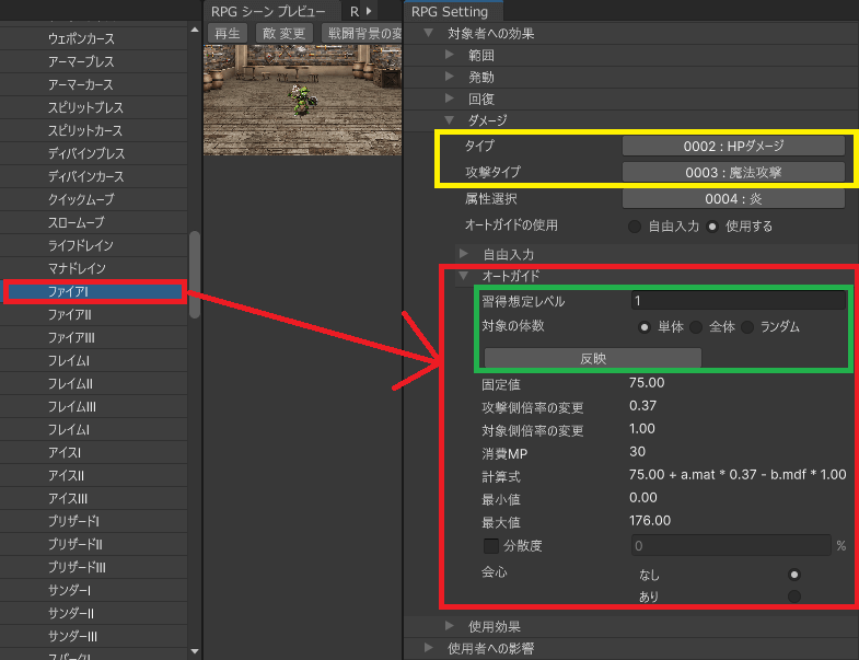 ここまで解説を行っていませんでしたが、スキルのダメージ計算式については、オートガイドを使用する、しないに関係なく、設定が必要になります。