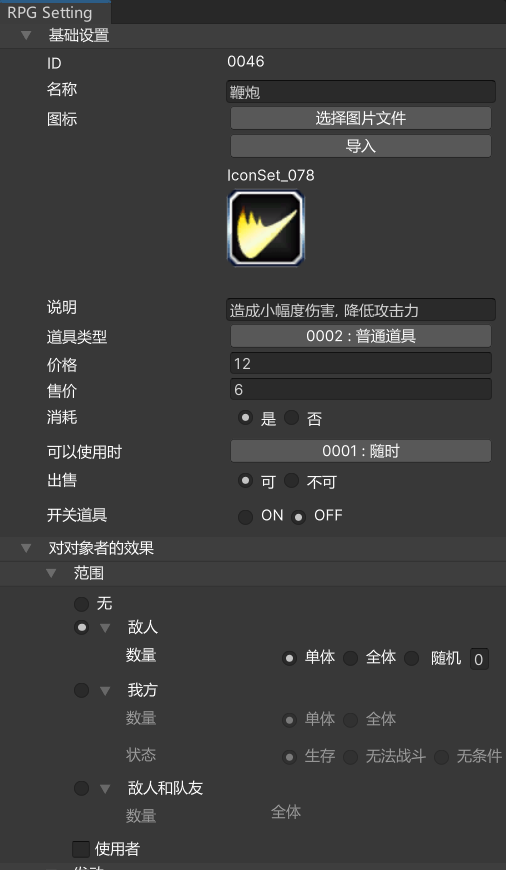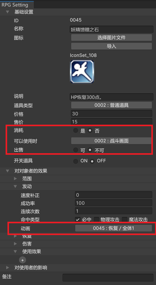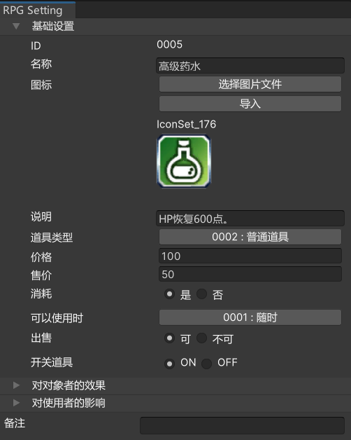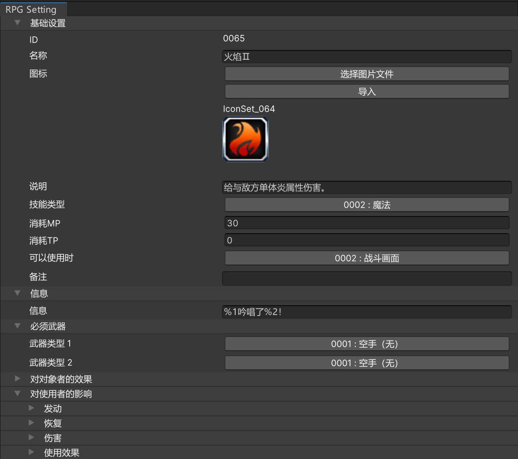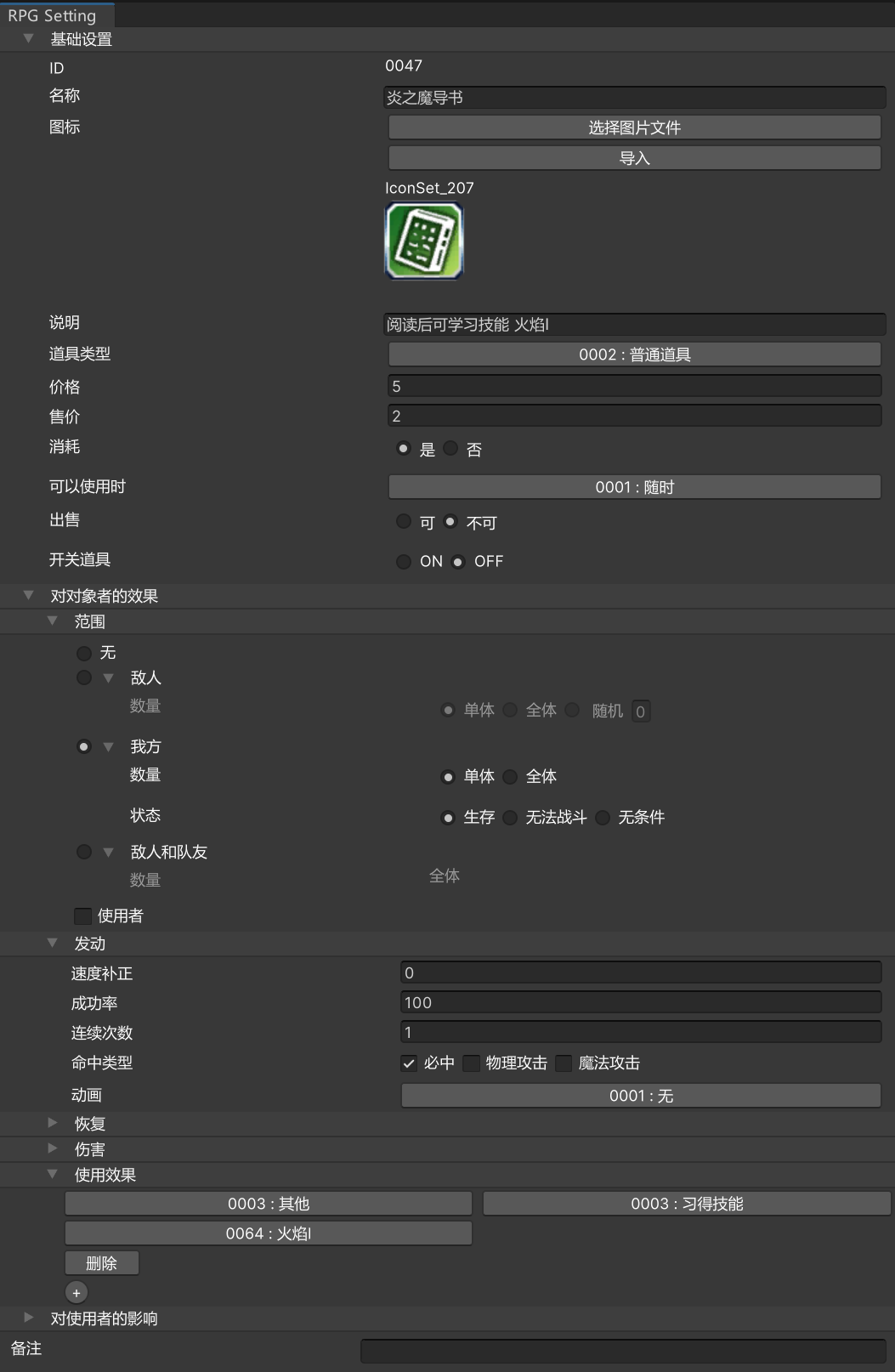 我们在前篇介绍过,技能和物品的使用效果是可以通过共通的方法来设置的。