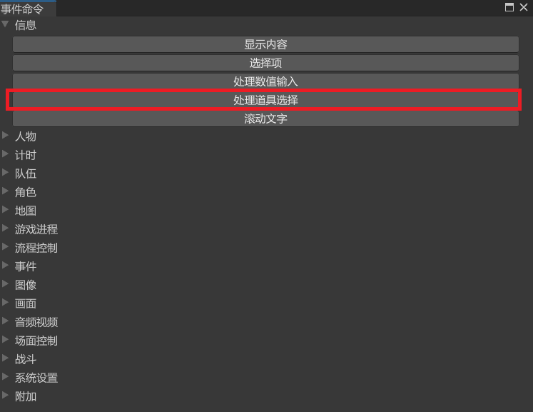 “隐藏物品A”“隐藏物品B”不会显示在菜单画面。</P> <P>预设主要用于后面提到的事件指令“物品选择处理”。