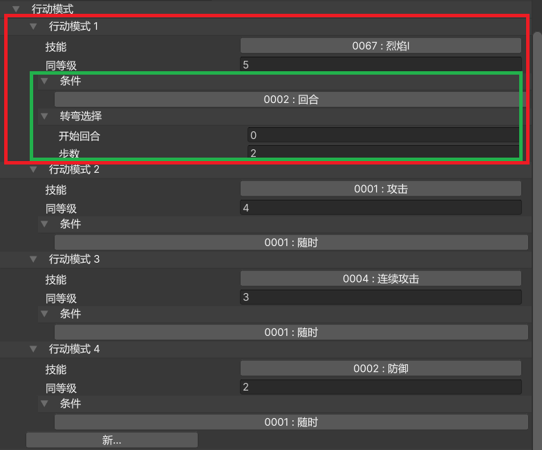 只有行动模式1中的“火焰I”的行动条件为“回合”、“步骤数2”。