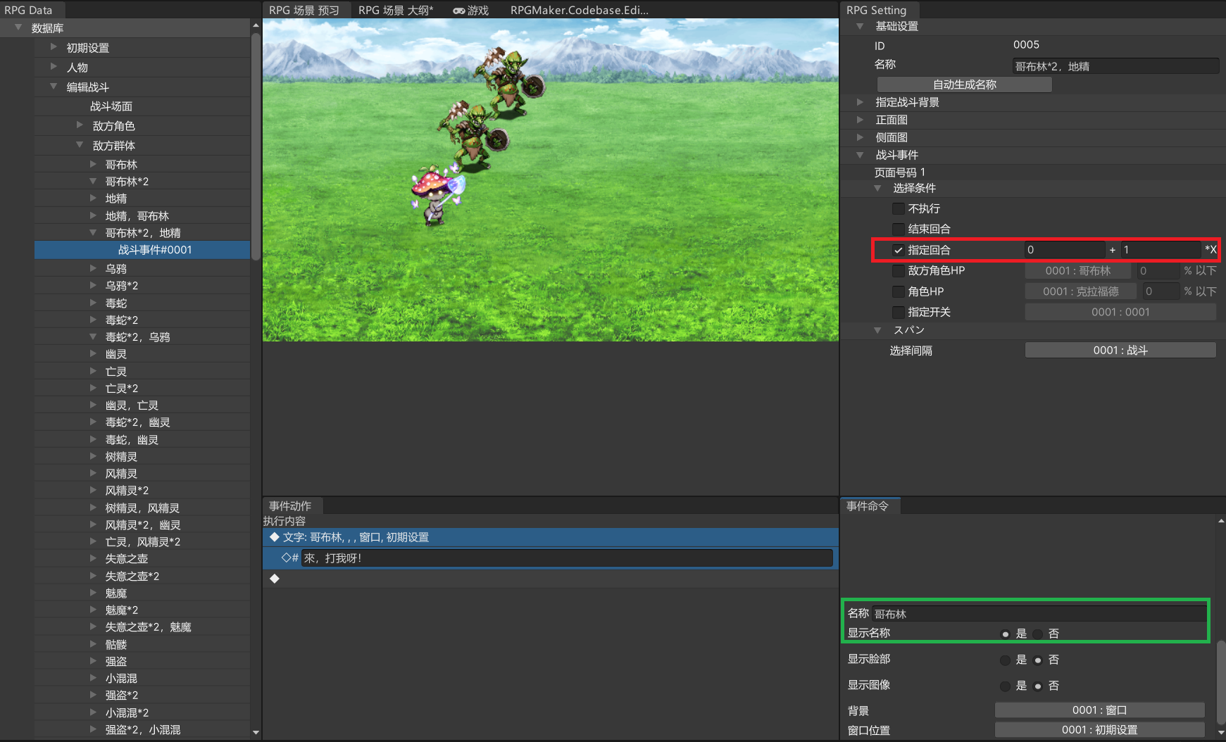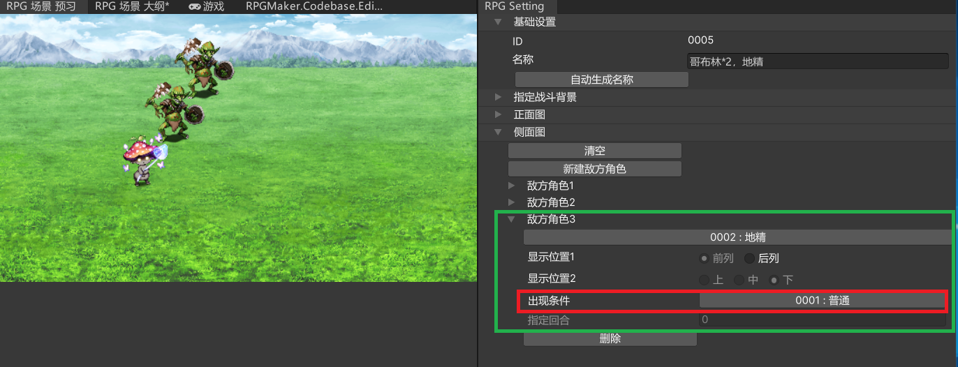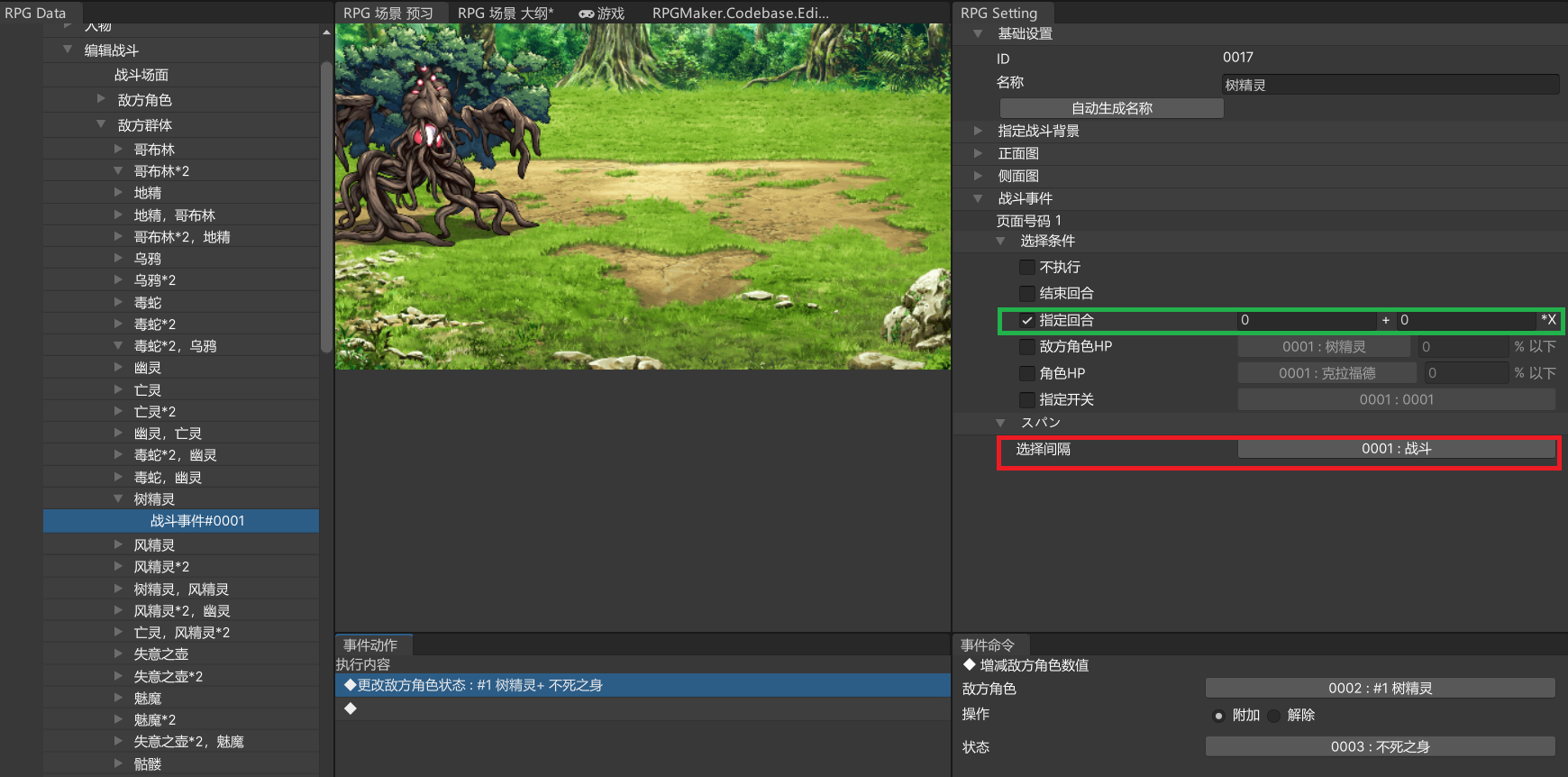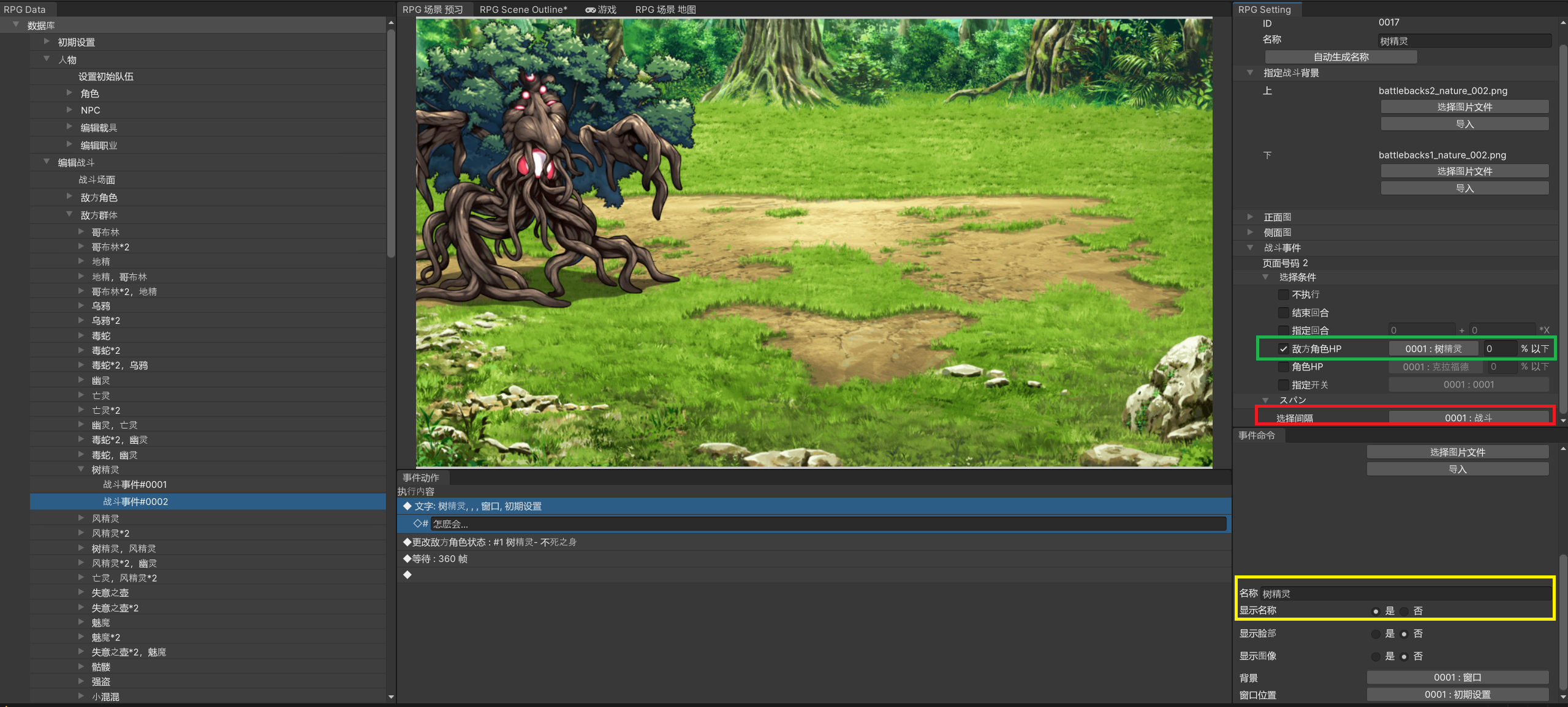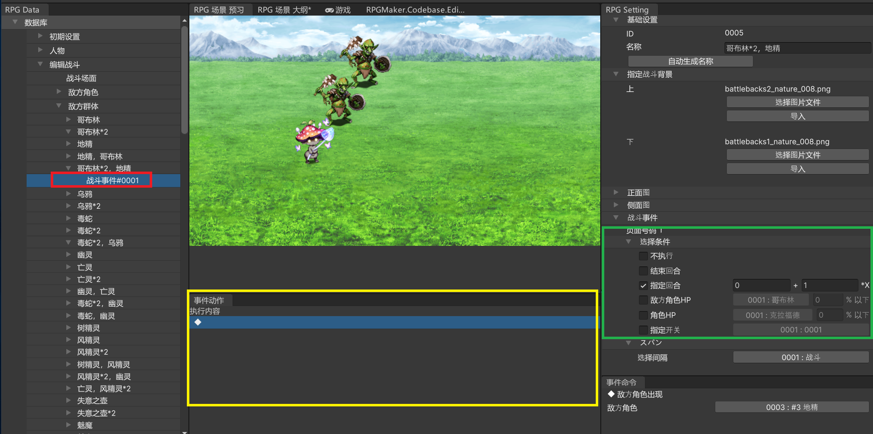 添加后,将在RPG Setting中生成“战斗事件”选项(绿框部分)。