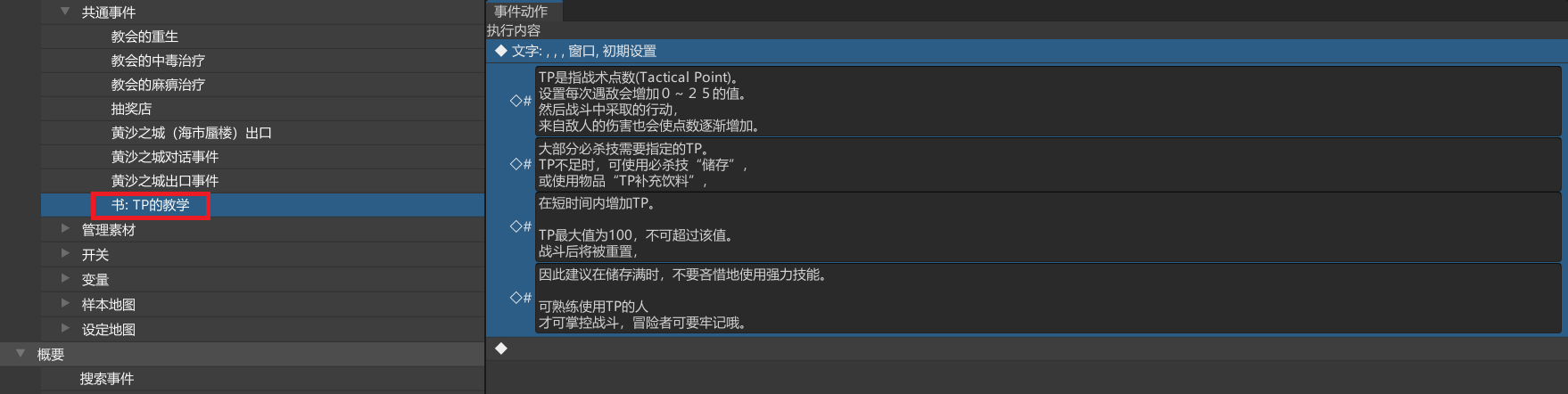 我们已经介绍了地图事件、共通事件,以及战斗事件。经过以上的学习,想必您已经一定程度上渐渐掌握了制作事件的诀窍。