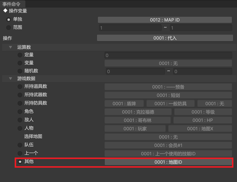 玩家选择的物品ID将被替换为指定变量。不选择任何物品并取消时,将代入0。