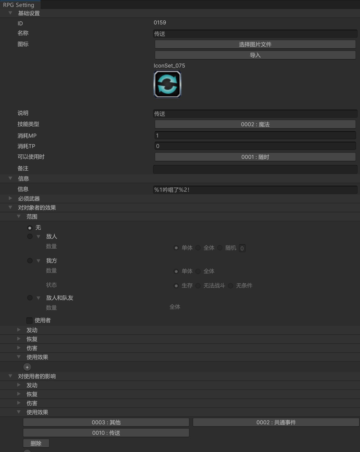 我们已经说明过,通过物品及技能的“使用效果”,可制作使用后启动共通事件的内容。