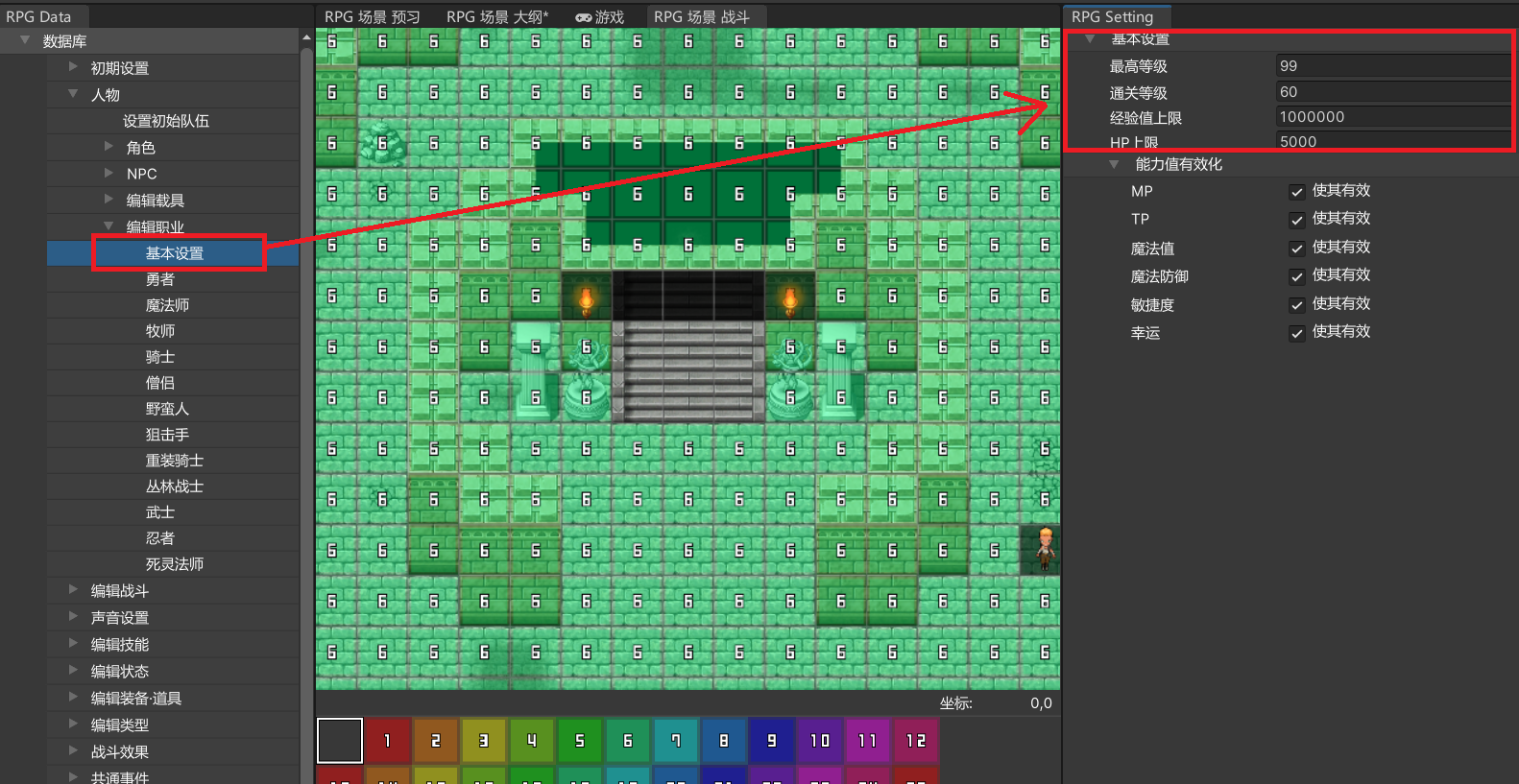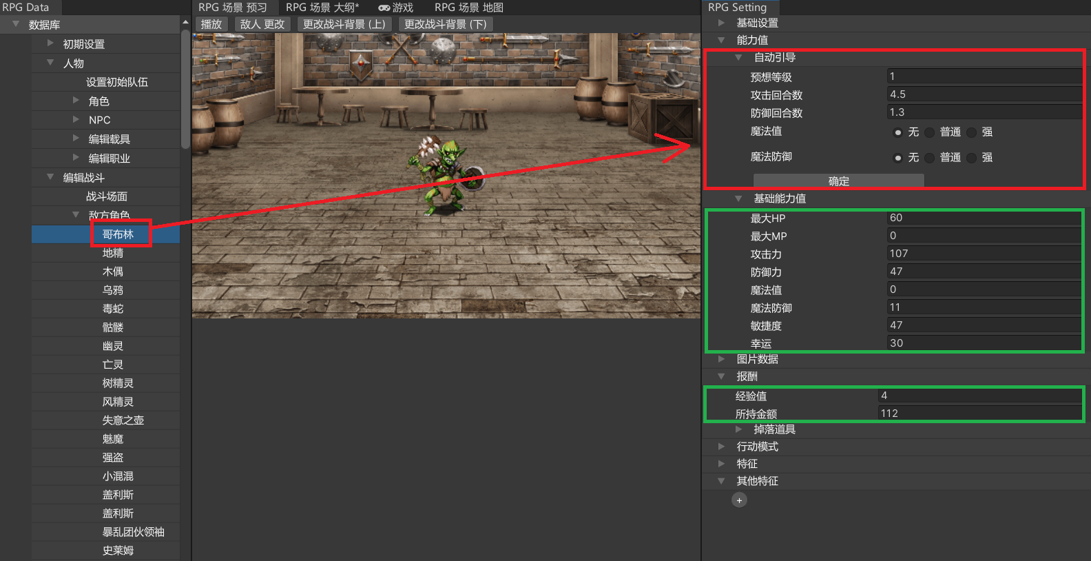 设置与该敌人战斗时的人物预设级别,即可自动设置最大HP及攻击力等参数,以及获得经验值与所持金额。