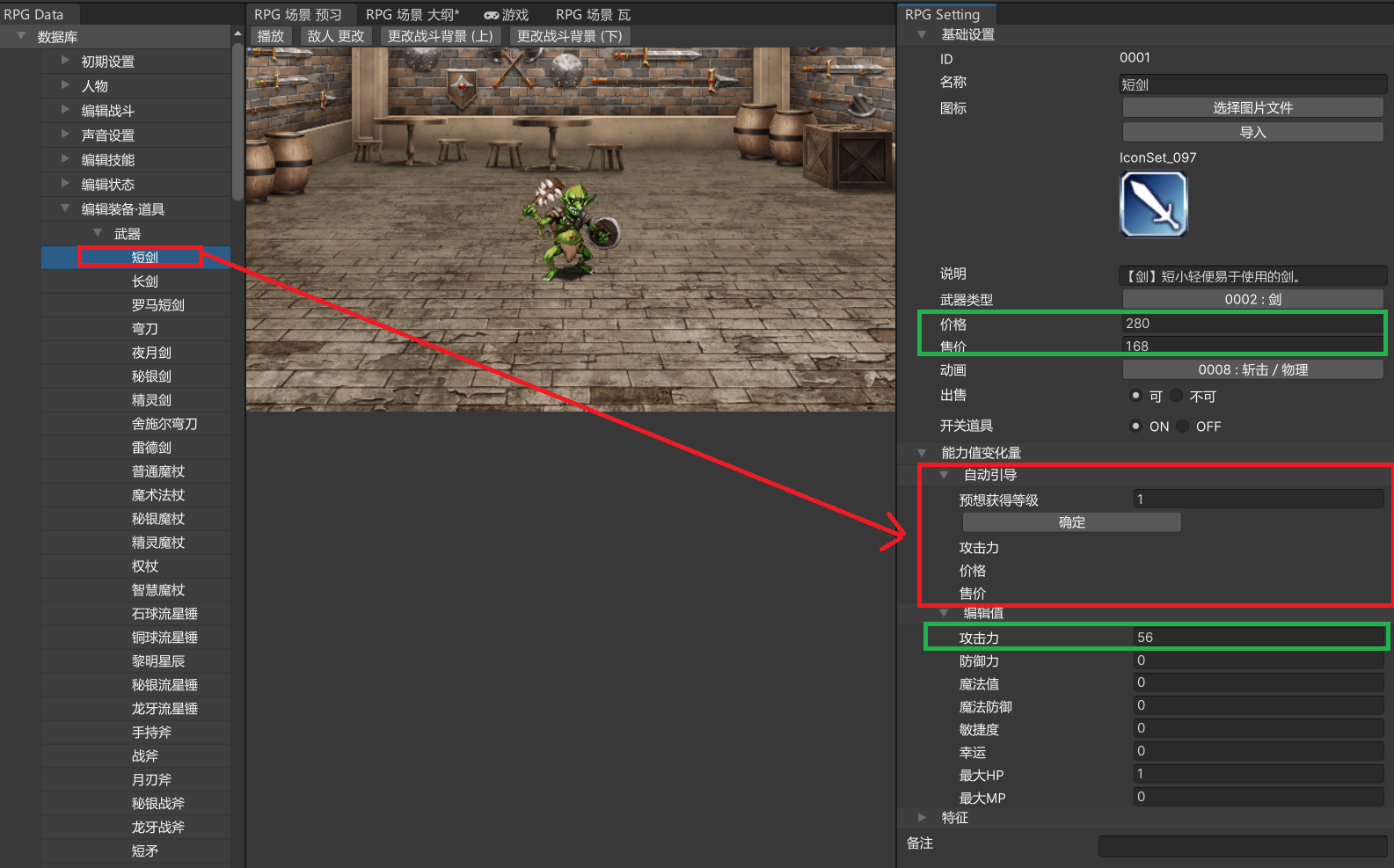 但是,由于武器只设置了攻击力,护甲只设置了防御力,如果想要编辑其他参数变化值,
