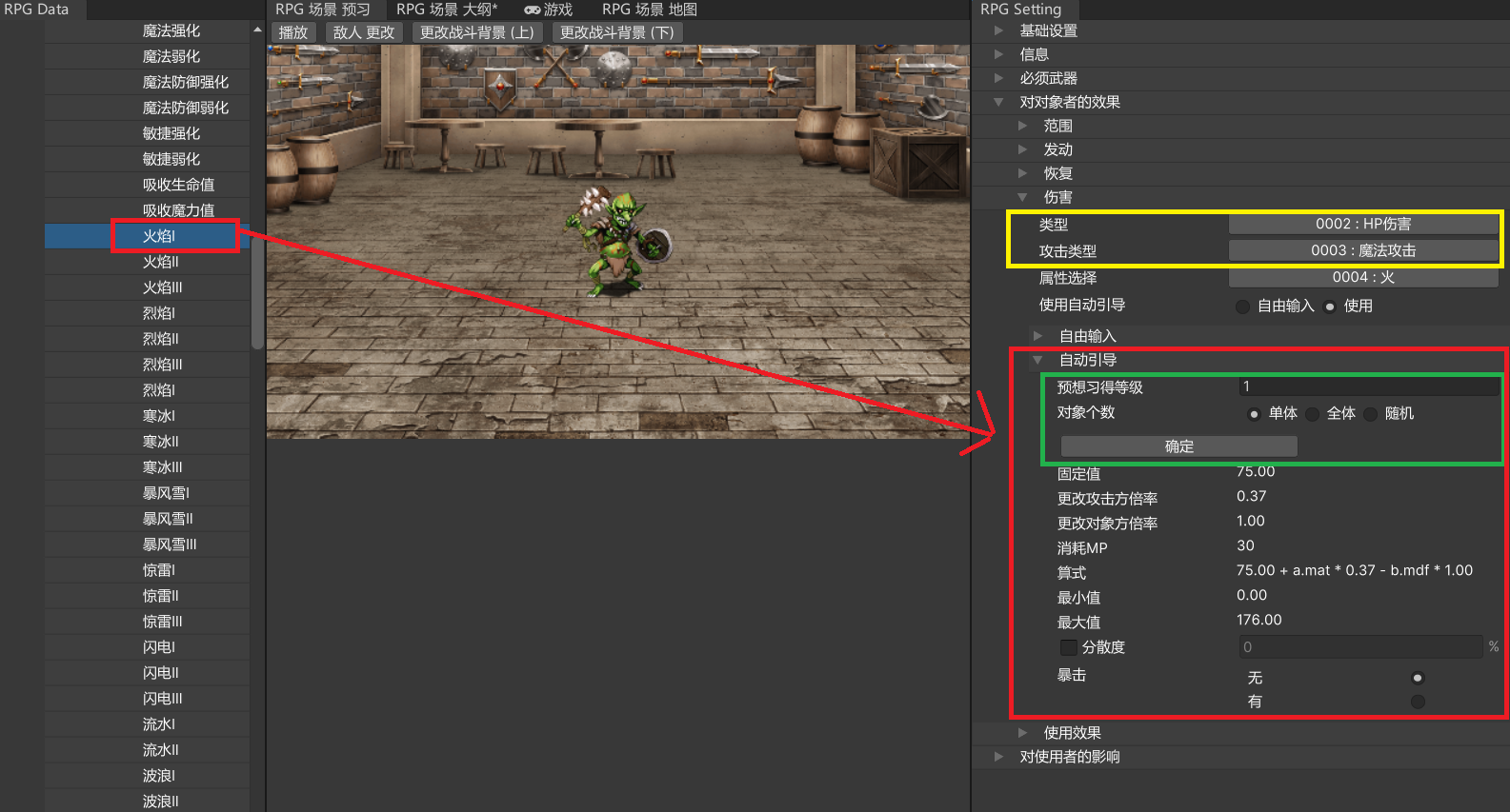 我们之前没有解说过,不论是否使用自动向导,都必须设置技能的伤害计算公式。